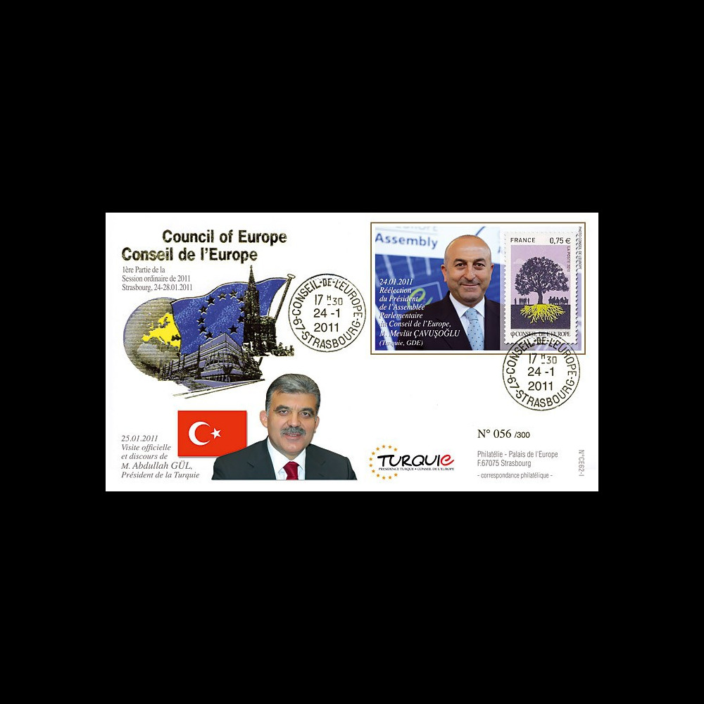 N°CE62-I : FDC First Part of the regular session of the Council of Europe Parliamentary Assembly January 24-28, 2011 "Reelection of the Council of Europe Parliamentary Assembly President, Mr. Mevlüt ÇAVUŞOĞLU (Turkey, EDG) - Official visit and speech of Mr. Abdullah GÜL, President of Turkey" :