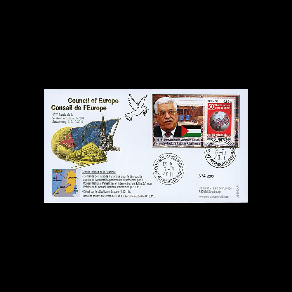 N°CE62-IV : FDC Four Part of the regular session of the Council of Europe Parliamentary Assembly to Strasbourg (France) October 3-7, 2011 "October 6, 2011 : Official visit and speech by Mr. Mahmoud ABBAS, President of the Palestinian Authority" :
