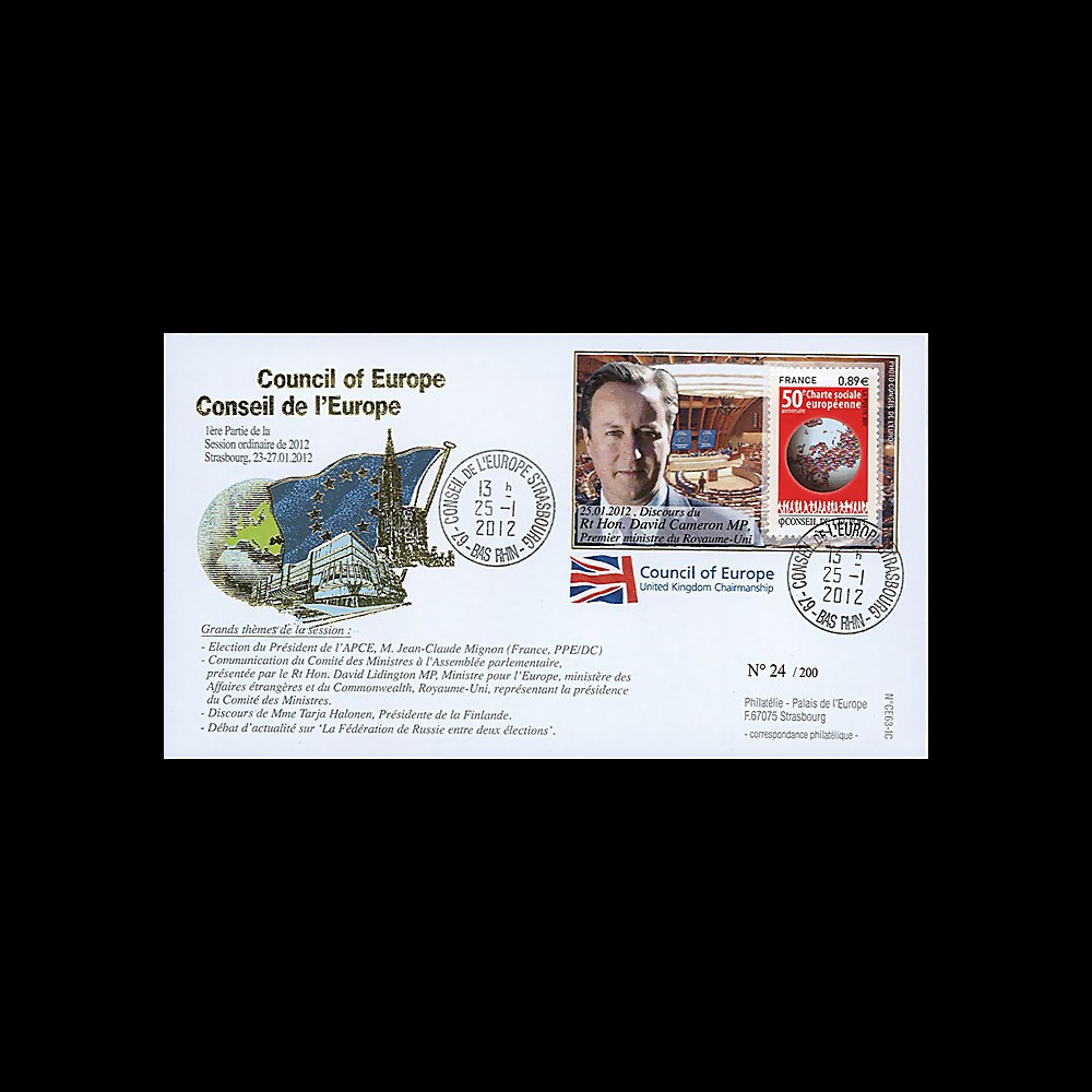 N°CE63-IC : FDC First Part of the regular session of the Council of Europe Parliamentary Assembly to Strasbourg (France) January 23-27, 2012 "January 25, 2012 : Official visit and speech by the Rt Hon. David CAMERON MP, Prime Minister of the United Kingdom" :