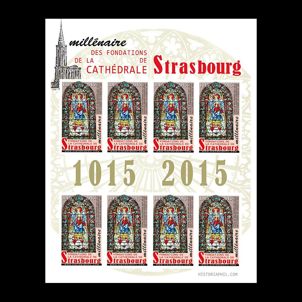 No. CE66-PJFND : Sheetlet of 8 labels gummed and not perforated "1955-2015 : 60th anniversary of the European Flag / 1015-2015 : Millenary of the grouds of the Cathedral of Strasbourg (France) - A circle of twelve stars inspired by the Representation of the Virgin MARY on a stained glass of the Cathedral" (Size : 14,3 x 18,5 cm) 2015 :
