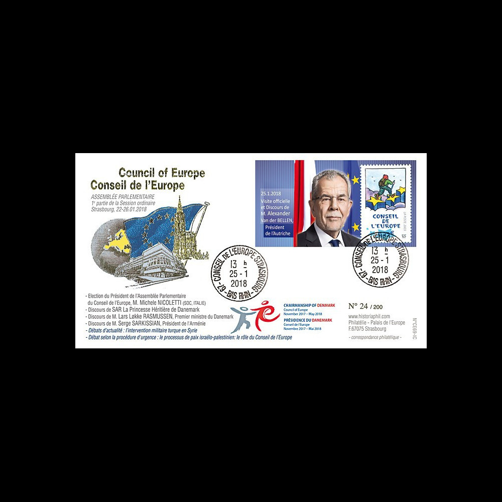 N°CE69-IB : FDC 'Premium edition' First Part of the regular session of the Council of Europe Parliamentary Assembly to Strasbourg (France) January 22-26, 2018