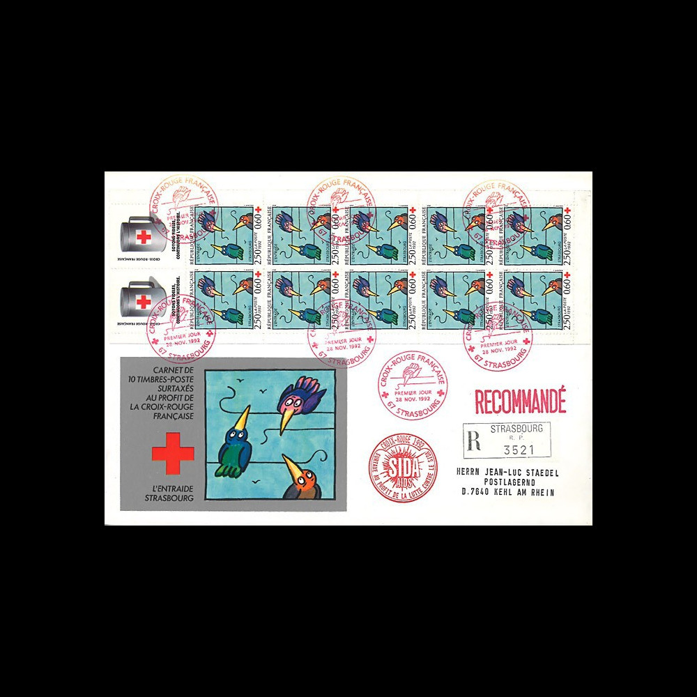 Postmarked First Day in Strasbourg “French Red Cross“ dated November 28, 1992