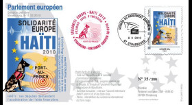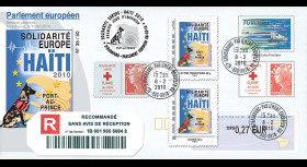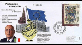 N°PE535a: service envelope of the european Parliament forwarded in REGISTERED «inaugural Address of the new President of the European Parliament, M. Hans-Gert Poettering, in presence of the German Chancellor Angela Merkel and of the President and the Commission Jose Manuel Barroso and discourse of the President of the Italian Republic, M. Napolitano»