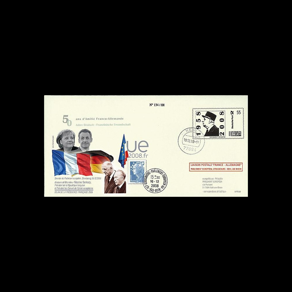 Postmarked (type2) European Parliament, Strasbourg 16.12.2008 "Results of the French presidency of the European Union - Speech by Mr. Sarkozy"