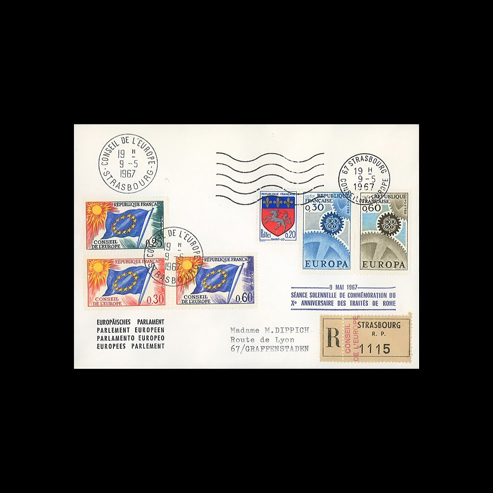 Postage stamp on official business 0,25+0,30+0,60F «European Council» + serie «Europa 67»