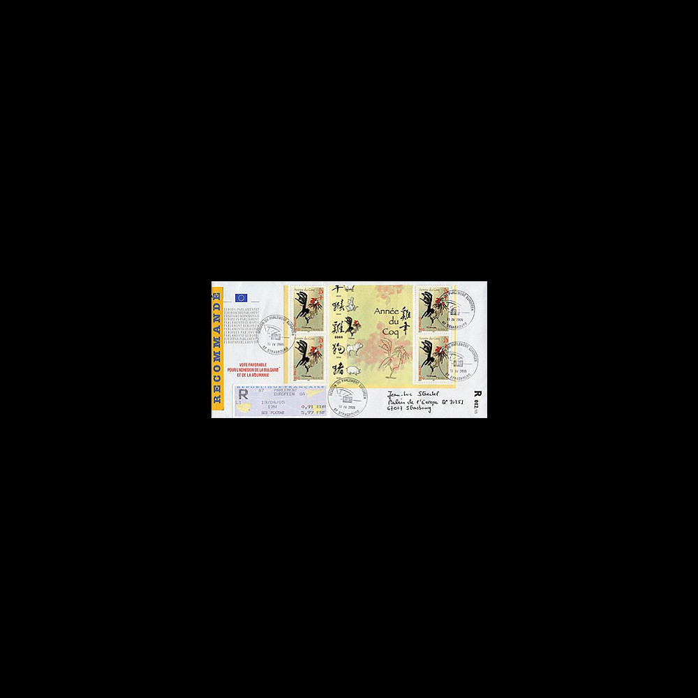 CAncellation illustrated postmark (dated stamp large size) European Parliament 13.04.05 on 4 values PS «Cock year»