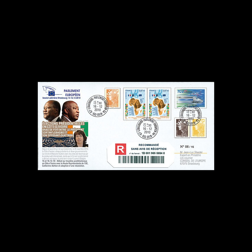 hand cancelled "European Parliament, Strasbourg" 16.12.2010