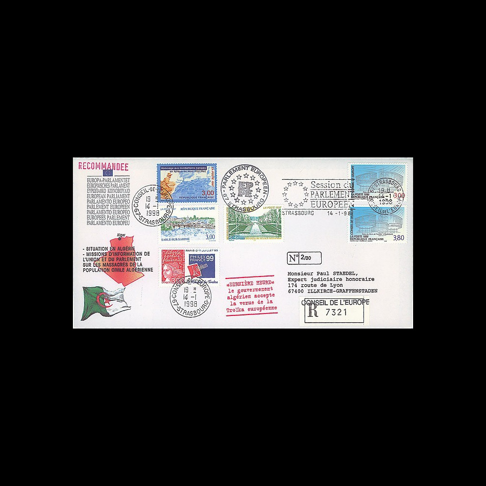 No. PE356a : Official envelope "European Parliament" RGISTERED session of the European Parliament in January 1998