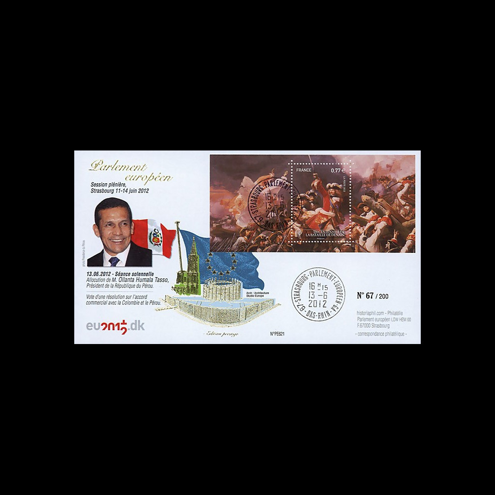 N°PE621 : FDC 'Premium Edition' Session of the European Parliament to Strasbourg (France) June 11-14, 2012 "June 13, 2012 : Official visit and speech by Mr. Ollanta HUMALA TASSO, President of the Republic of Peru - Vote of a resolution on the trade agreement with Colombia and Peru" :