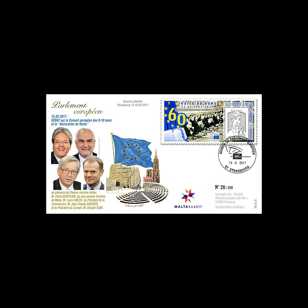 PE708 : FDC 'Premium edition' Session of the European Parliament to Strasbourg (France) March 13-16, 2017