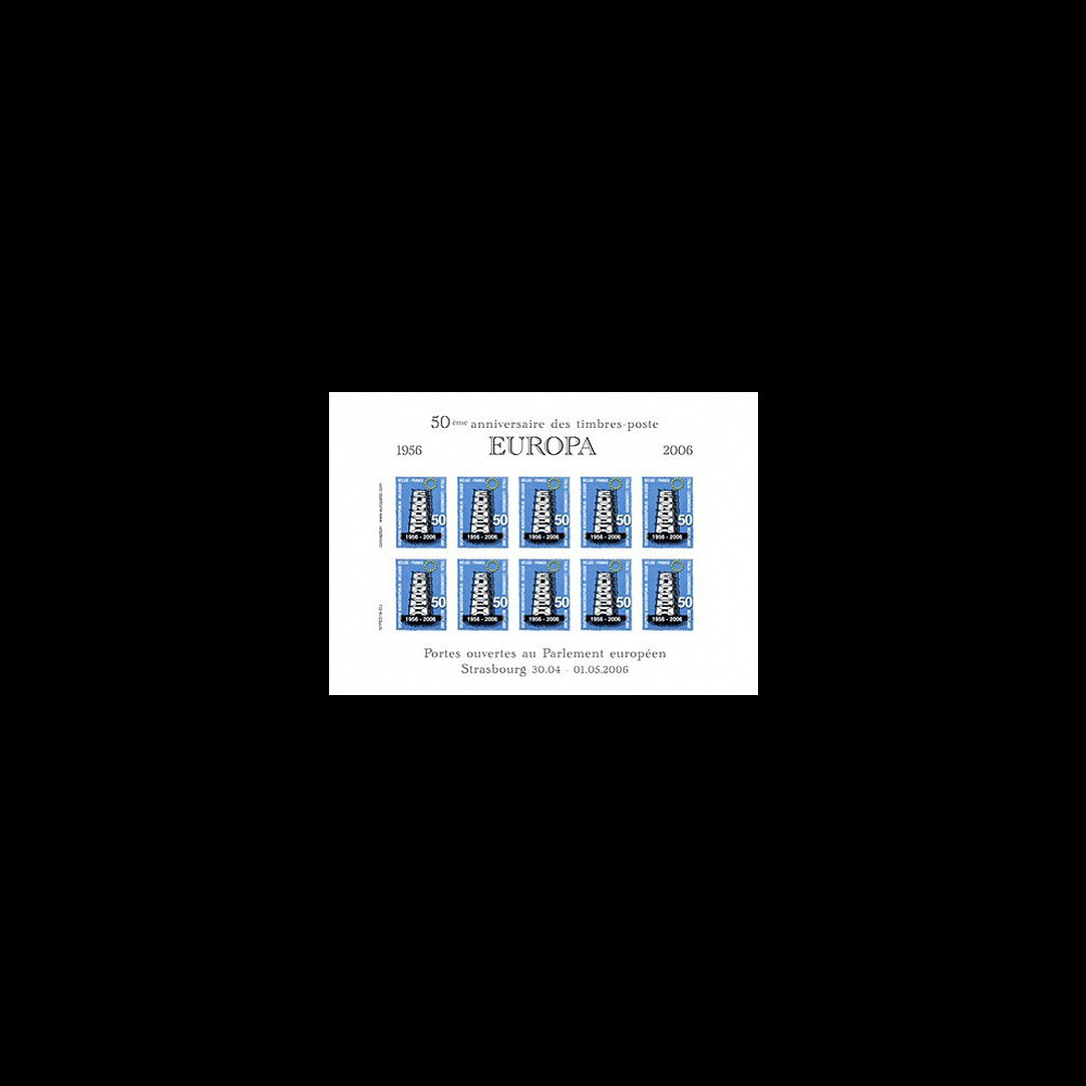 N°PE518-EU: Booklet non-perforated of 10 vignettes "50th anniversary of the stamp EUROPA 1956-2006" on gummed paper. Illustration of the original stamp of 1956.