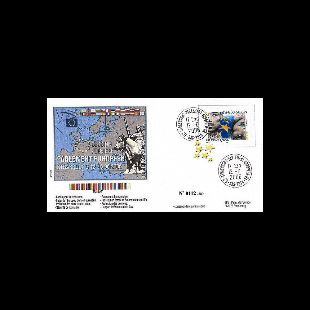 N°PE520: FDC Session of the European Parliament - june 2006 : "- Funds for the research - Futur of Europe - european Council - Pollution of the underground waters - Security of the aviation - Racism and homophoby - Prostitution andt sportive events - Protection of the facts - temporary Report of the CIA"