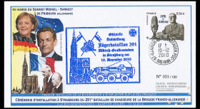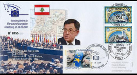 N°PE528 (A380-26) : FDC 'Premium edition' Session of the European Parliament to Strasbourg (France) November 13-16, 2006 "November 15, 2006 : Official visit and speech by His Highness the Sheikh Hamad BIN KHALIFA AL THANI, Emir of the State of Qatar / Airbus A380 Qatar Airways" 2006 :