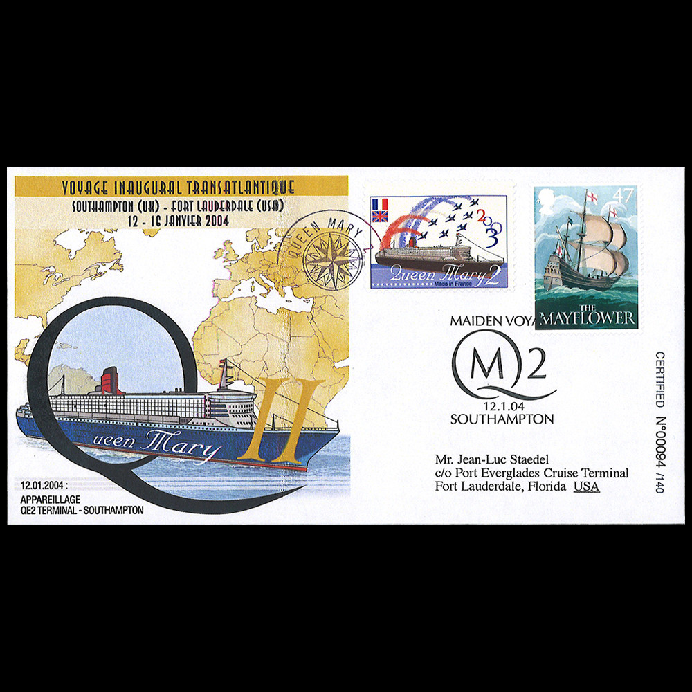 - Southampton postmark “QM2 Maiden voyage” 12.01.2004