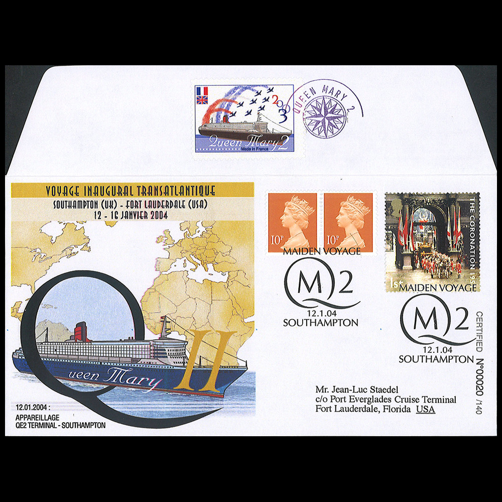 - Southampton postmark “QM2 Maiden voyage” 12.01.2004