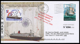 - Red onboard authentication postmark "Posted Onboard - QUEEN MARY 2 - Maiden Voyage 12th to 26th January 2004"