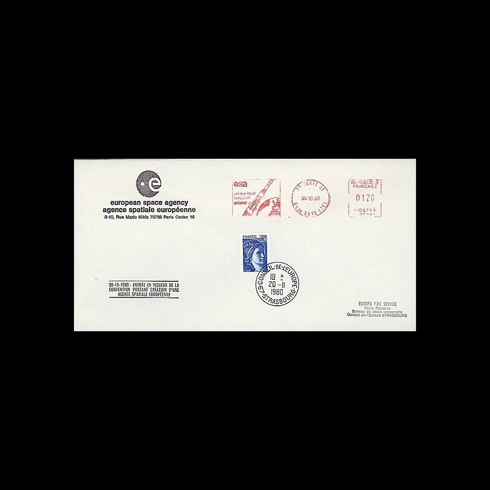 N°AR 8LA : Illustrated FDC 'Coming into force of the Convention on the creation of the ESA'
