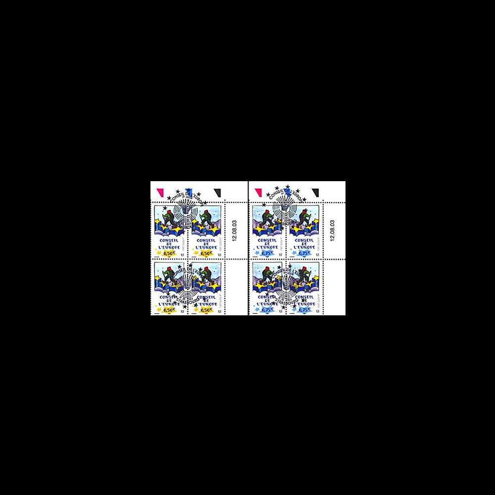 N°CE54-PJ4CD: The two service stamps of the «European Council 2003» "Walker on the stars" from Tomi Ungerer, in block of four sheet corner dated