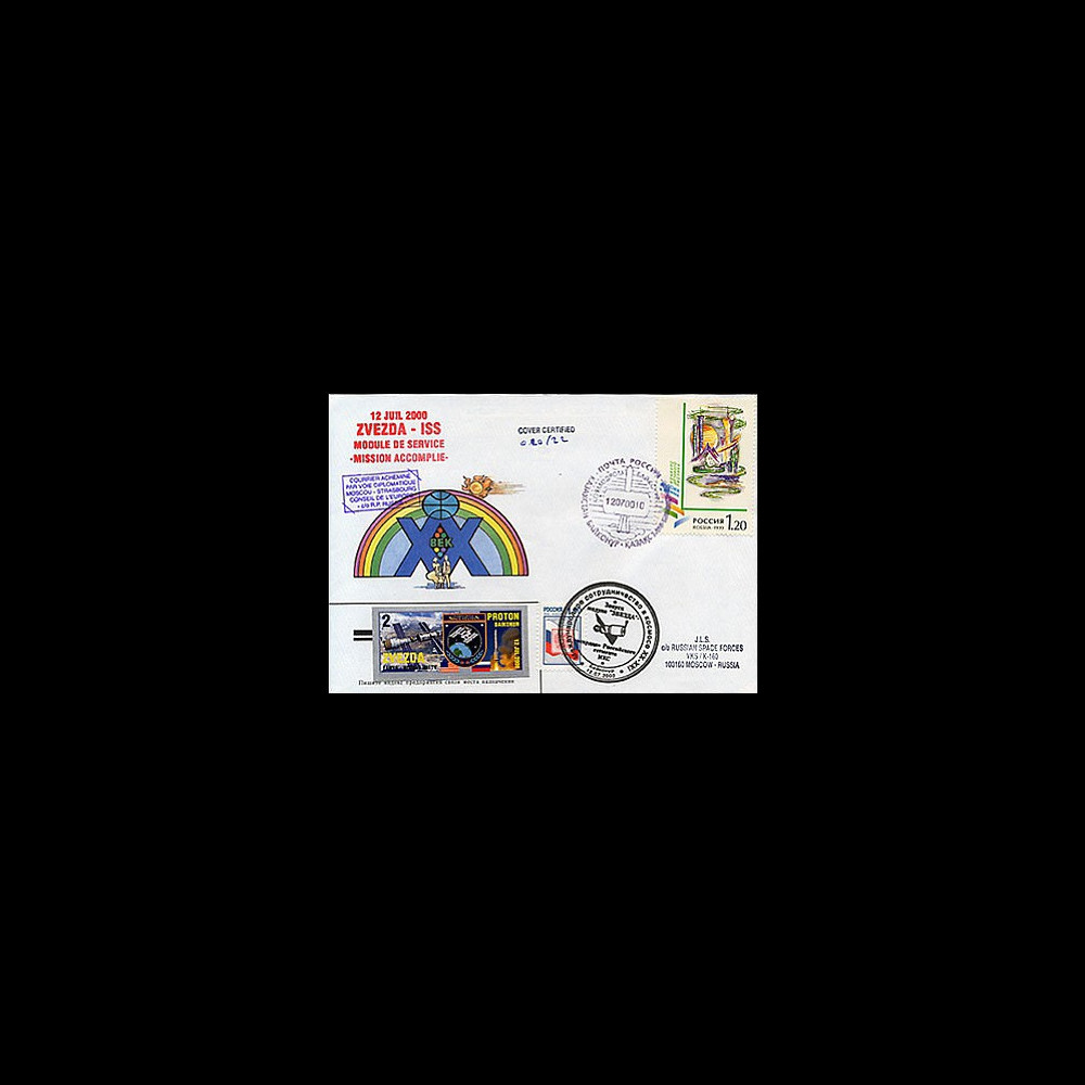 N°ZVEZDA-2: Envelope «XXth century » Mission ZVEZDA ISS - Baïkonour 12.7.00 (3 postmarks) - "Launching of the second Russian module" ZVEZDA" by a rocket Proton.