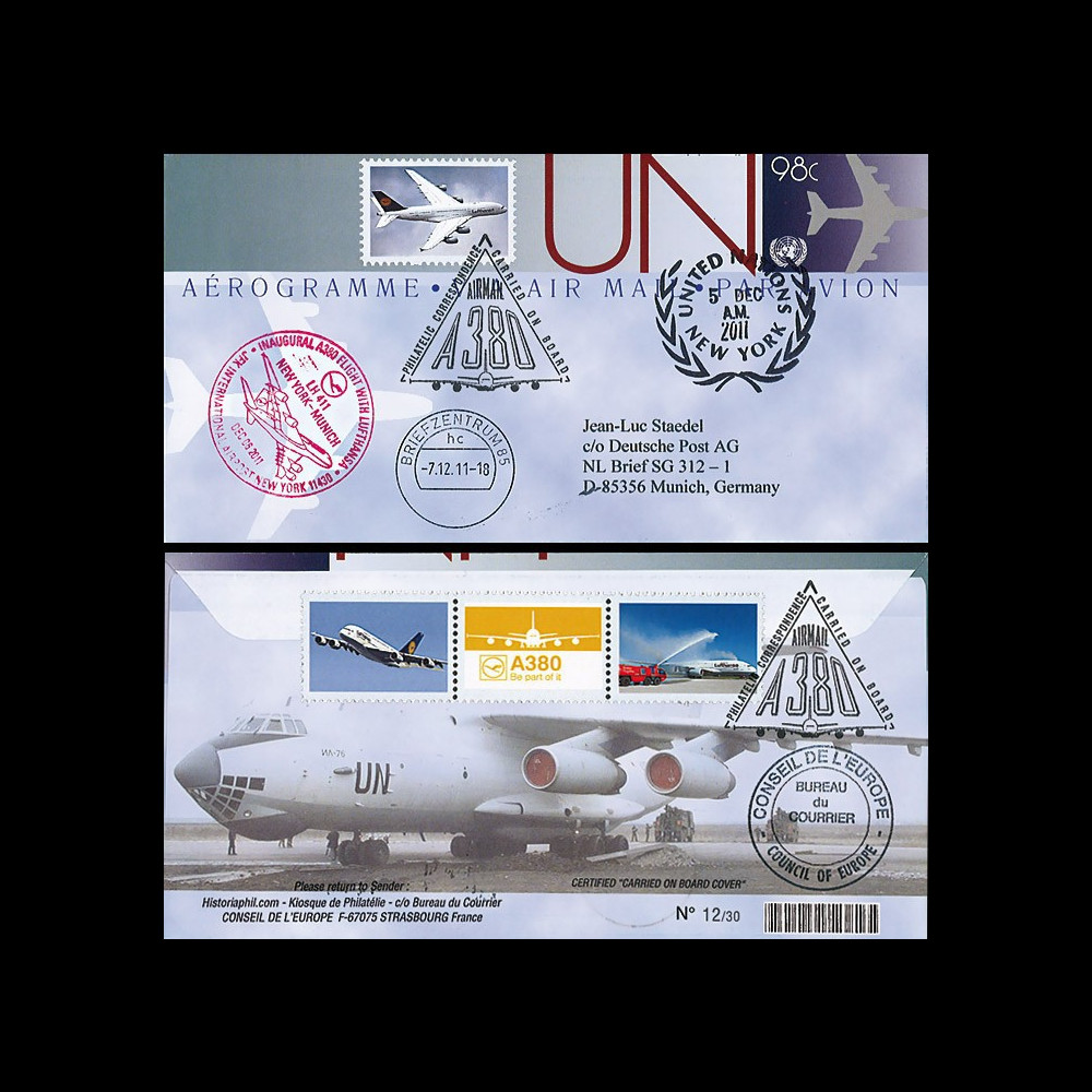 + flight cachet New York JFK “Inaugural A380 Flight LH411“ dated December 6, 2011