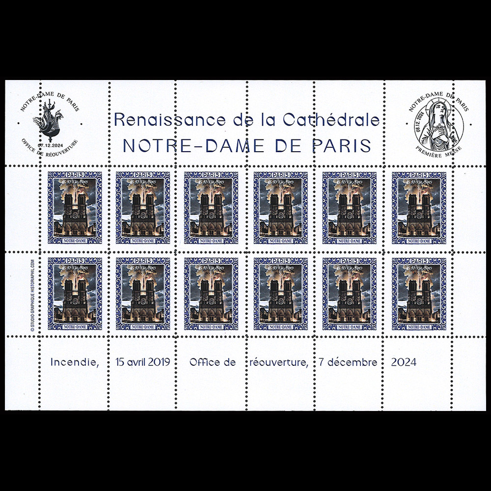 On December 7, 2024, the Historiaphil team went specially to Paris to have its philatelic editions, produced in commemoration of the official reopening ceremonies of the restored Notre-Dame Cathedral in Paris, postmarked. The limited edition of 50 copies for each type of document published, makes it a philatelic rarity "Witness to History".