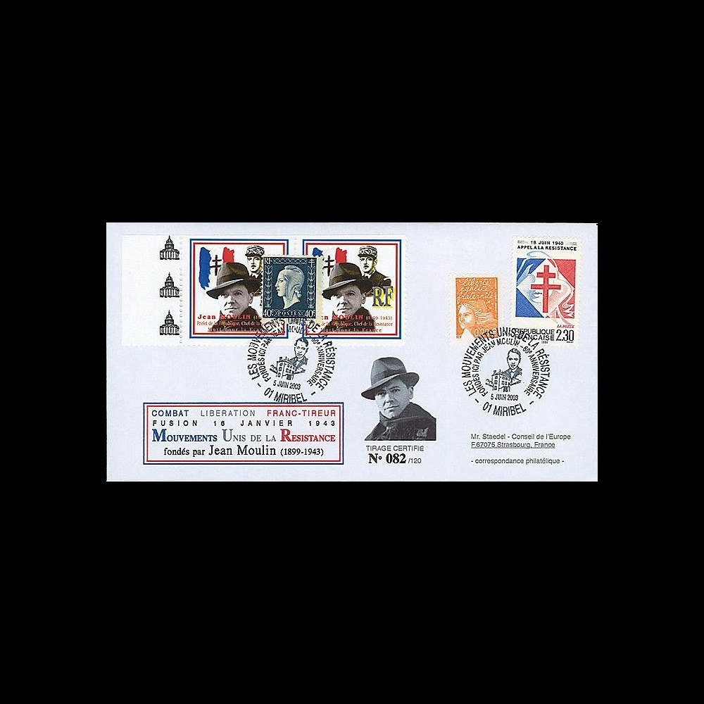 N°DG 03M1 type2: FDC «Jean Moulin - United Movements of the Resistance»