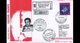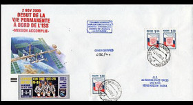 N°TM-31-1: Envelope «construction ISS » 1st crew on board - Baïkonour 31.10.00 (4 postmarks).