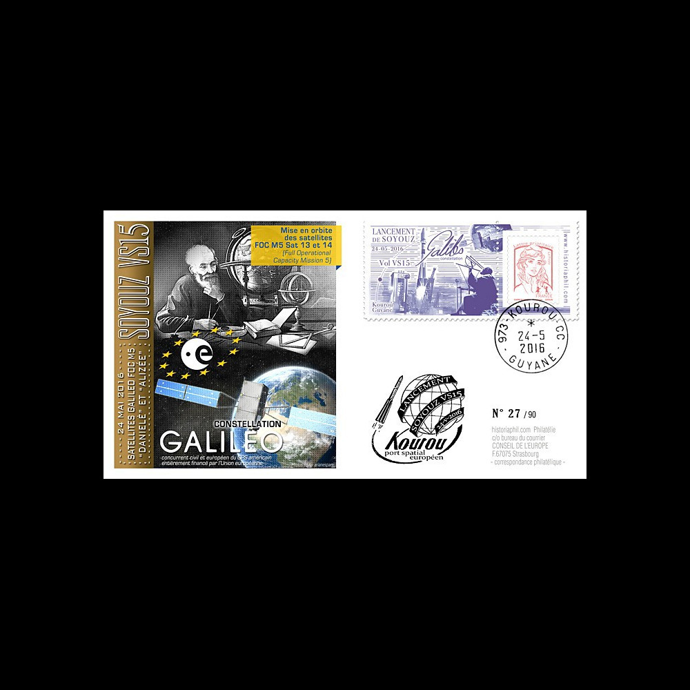 N°VS15L : FDC KOUROU (French Guiana) "May 24, 2016 : Launching SOYUZ Rocket - Flight No. 15 / Arianespace to Launch two additional FOC M5 satellites (Full Operational Capacity Mission 5) : "DANIELE" & "ALYSEE" - Constellation GALILEO"