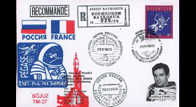 A series of four exceptional astrophilatelic covers, made in “Kazakhstan - France” philatelic twinning, commemorates this historic moment in the European conquest of space. Attention! Only 50 numbered series were made.