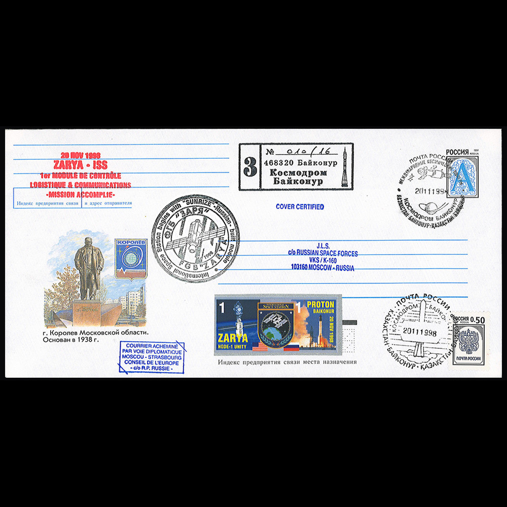 - 2 x illustrated cancellations "Cosmodrome Baikonur - Kazakstan" 20.11.1998