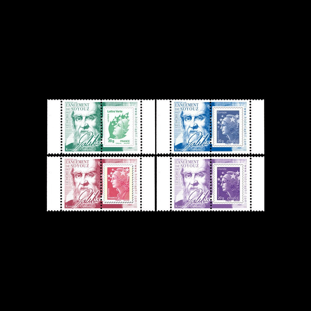 No. VS03L-PT1/4 : set of 4 gummed and perforated Stamp Display Units “Launch No. 03 Soyuz 12.10.2012 - Galileo (futur european GPS)“