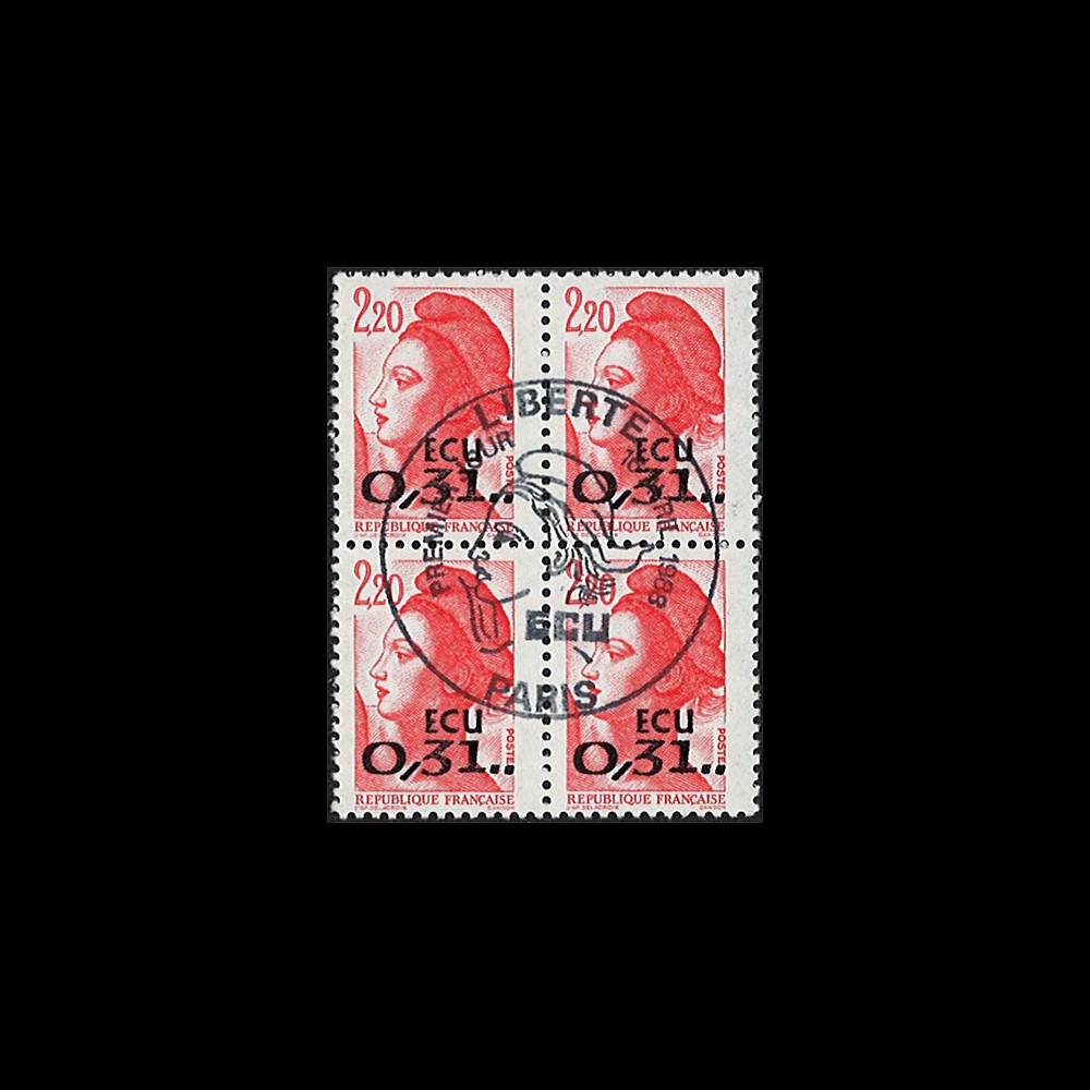 N°YT2530PJ : FRANCE 1988 block of 4 values 'Freedom of Gandon' 2,20FF overprint 0,31.. ECU (first french stamp with face value in ECU)