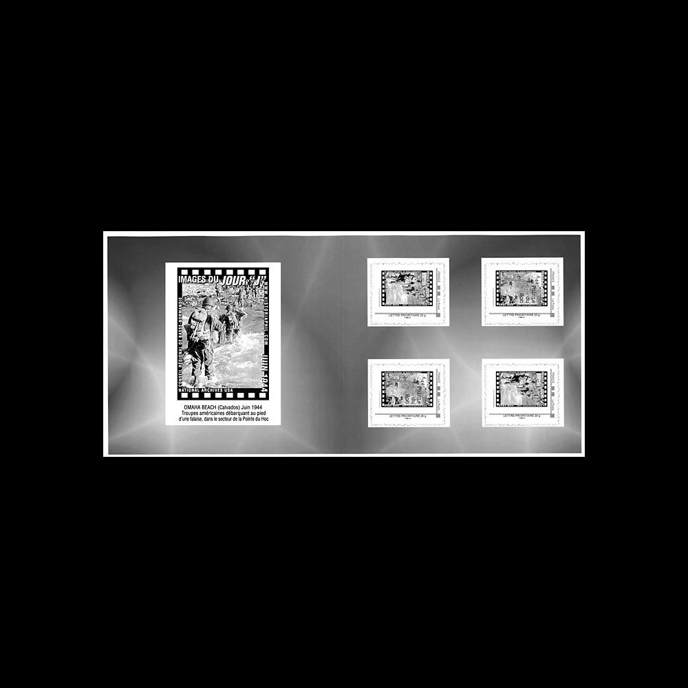 N°DEBS1-1C : FRANCE Collector Booklet of 4 values Personalized Stamps Priority Letter 20g "D-Day Photograph June 1944 - Serie Nr 1 / Omaha Beach (Calvados, France) June 1944 : Pointe du Hoc Assault by the Colonel Rudder's 2nd Rangers Battalion & Landing in Normandy / D-Day 67th anniversary" (unfolded) 2011 :
