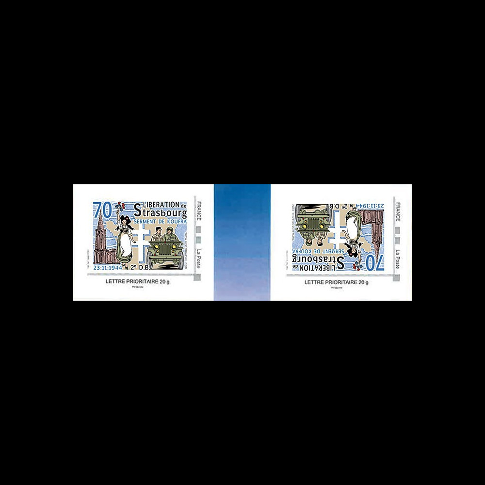 LIB14-STR1VN : FRANCE 2 Personalized Stamps Priority letter 20g INVERTED PAGES background BLUE holding