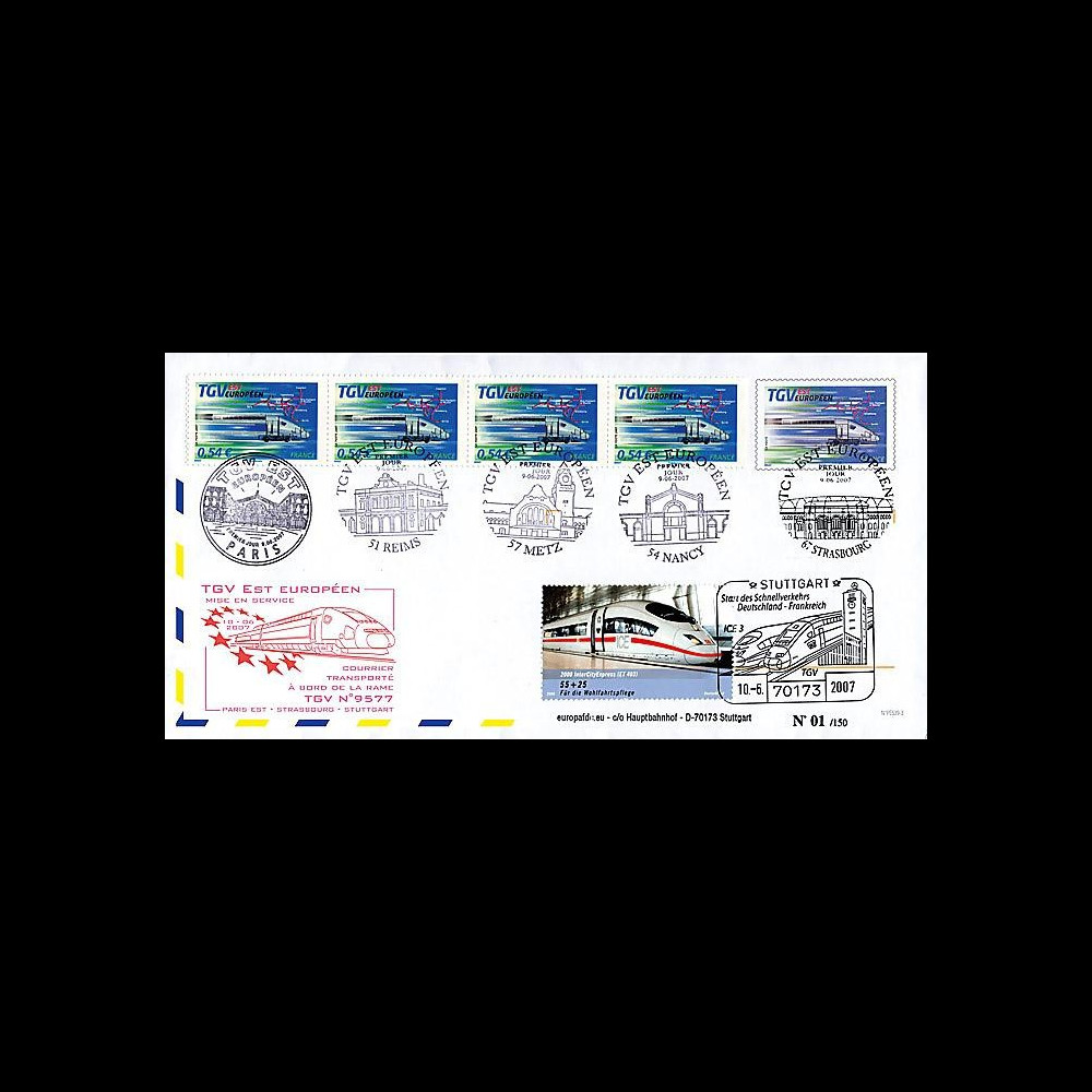 + Postmarked in Nancy "First Day - East European TGV" (France) dated June 9, 2007