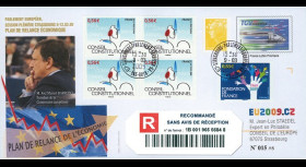 N°PE539-VCB : 1 bloc de quatre vertical variété 'décalage vertical des couleurs' avec code-barre + 1 bloc de quatre 'normal' rare
