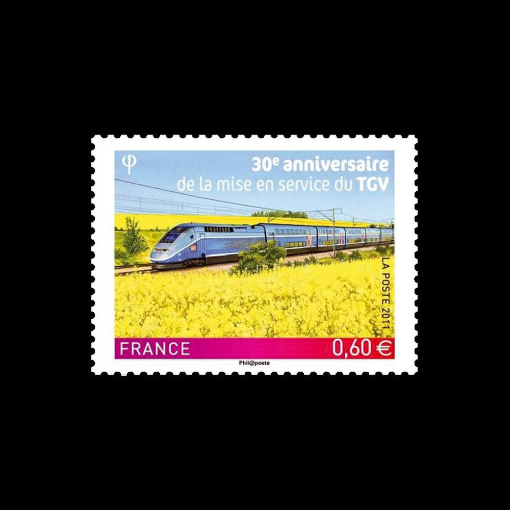 N°TGV11-1NG : FRANCE 1 value 0,60€ "30th anniversary of the Commissioning of French TGV (High Speed Train) 1981-2011"