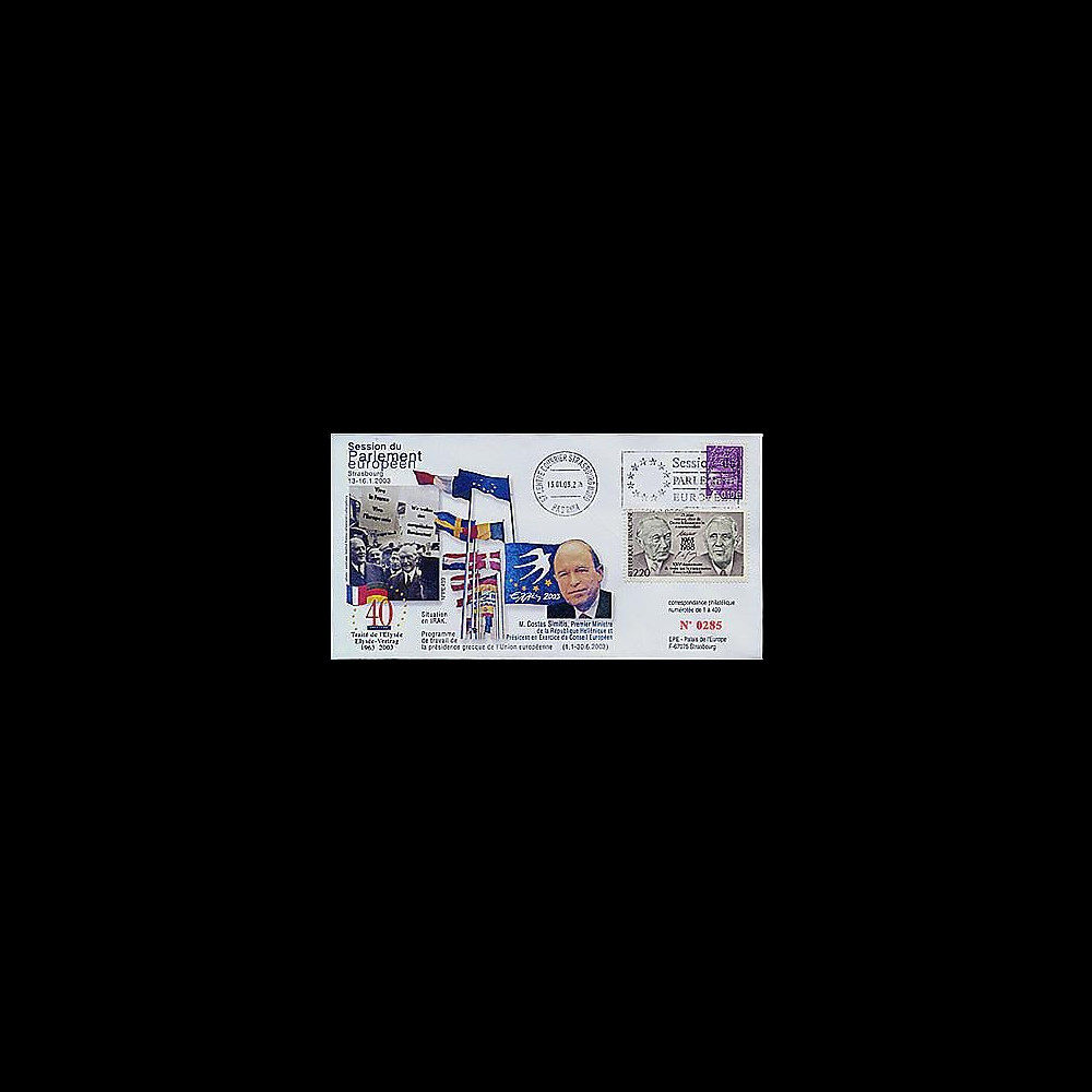 Slogan cancellation 13.1.03 on PS «de Gaulle-Adenauer» for the «40 years of the Treaty of the Elysée and Greek Presidence of the European Union.