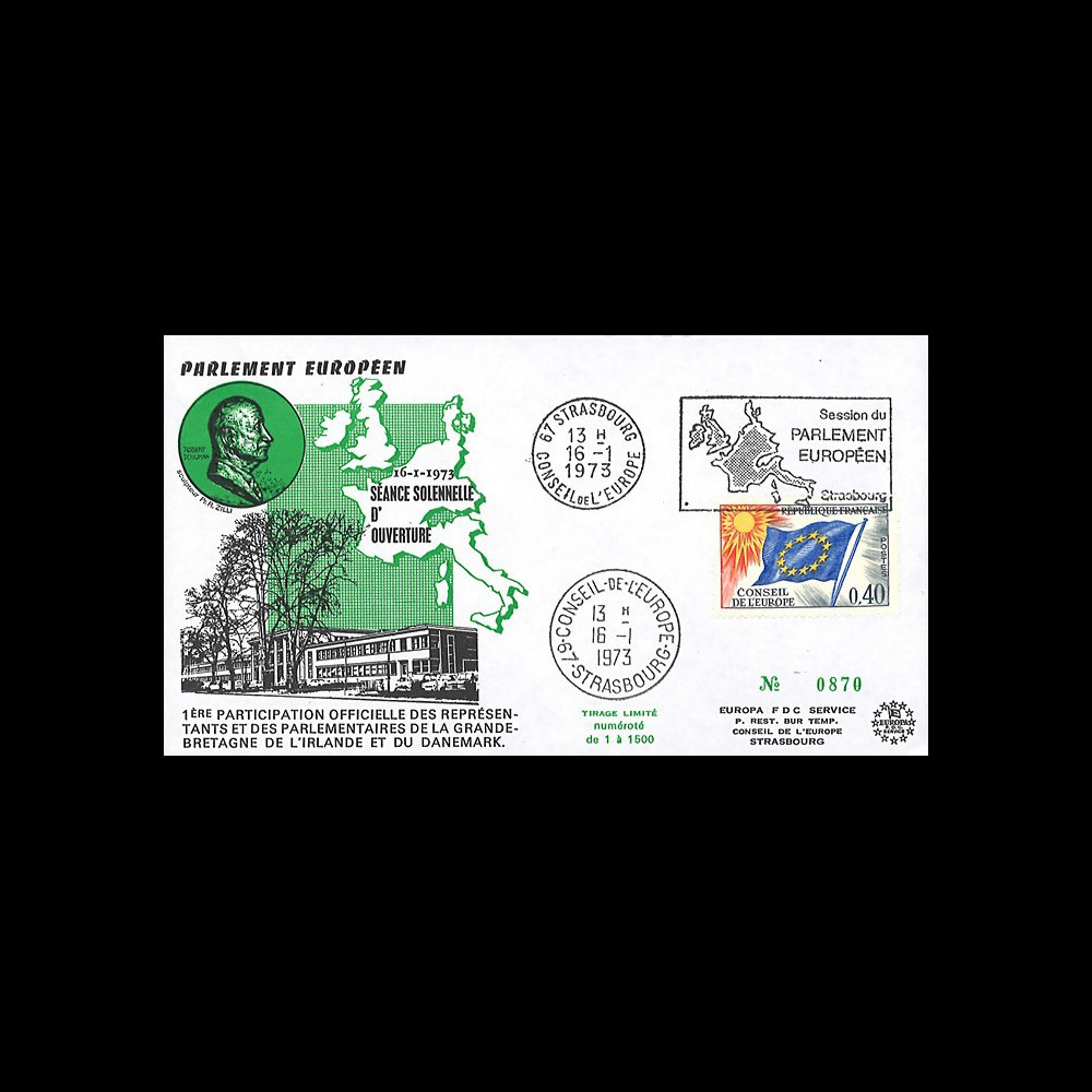 N°AP106 : FDC European Parliament “January 16, 1973: Inaugural sitting of the 1st session with parliamentarians from Great Britain, Ireland and Denmark“