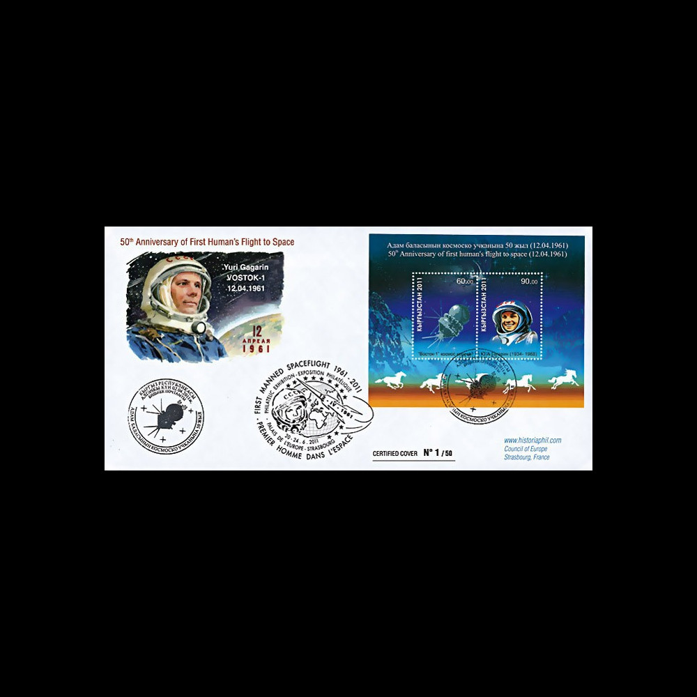 GAGARIN11-6 : FDC KYRGYZSTAN First Day of the block "Yuri GAGARIN & Spaceship VOSTOK-1 - 50th anniversary of the First Manned Spaceflight 1961-2011" :
