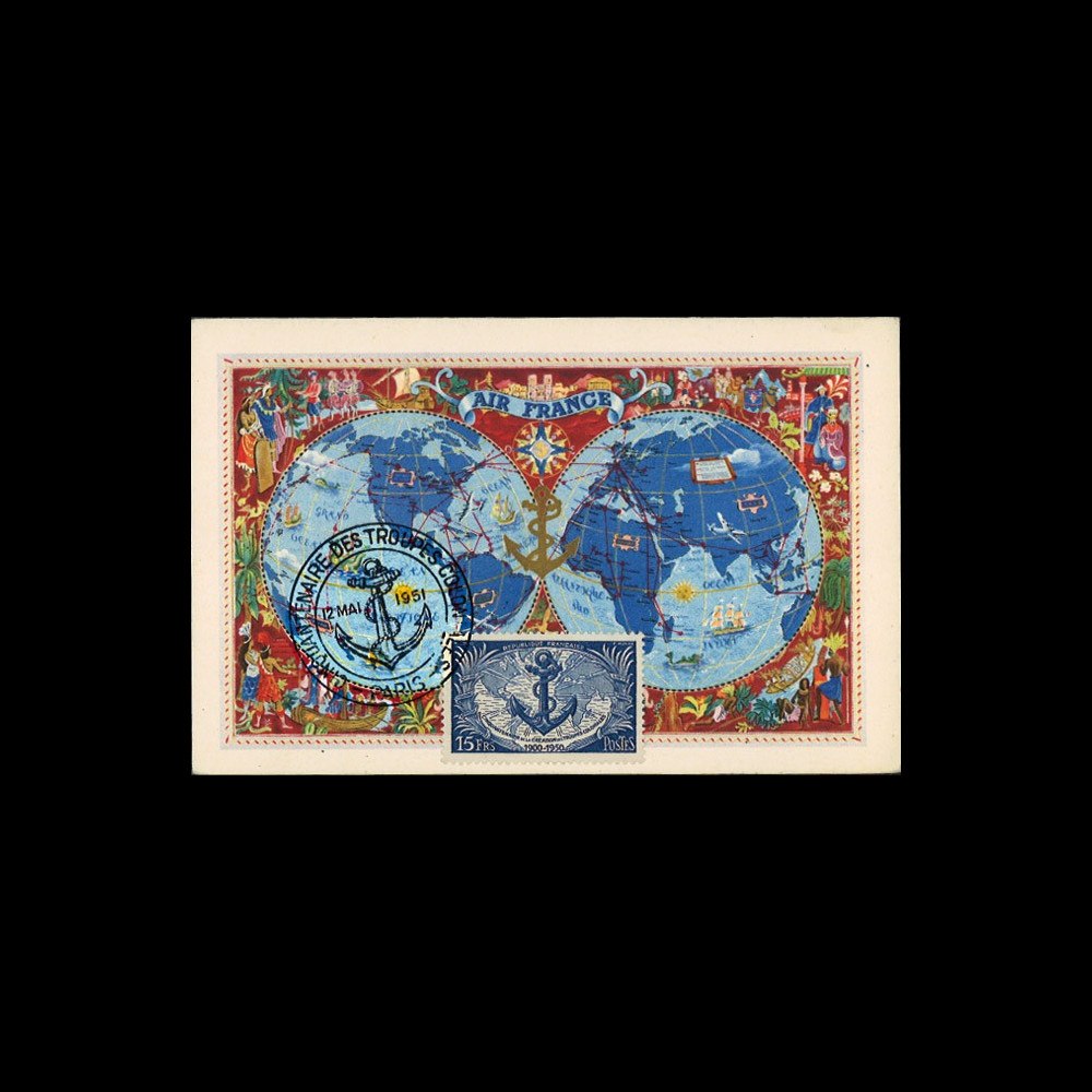 Postmarked in Paris «Fiftieth Anniversary of Colonial Troops (1st Day)» dated May 12, 1951